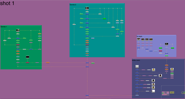 This weekend I was able to start and almost finish compositing scene 7. Last class I had done a lot of the modeling and rendering of the hallway. I need to re render some of them because I added some disturbance, but I'm not sure if I'm going to keep it. I will get feedback in class tomorrow. I also officially the last shot in scene 5. All I needed to add was the tv room to behind the curtain and animate the curtain. Also, Thursday I finished the stairs shot and put it into the video so you can see the progress below.