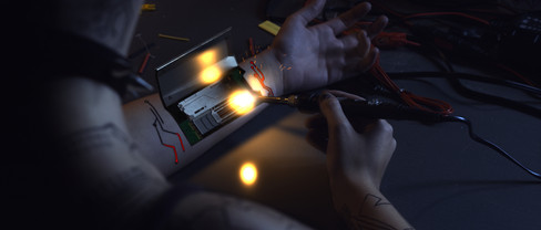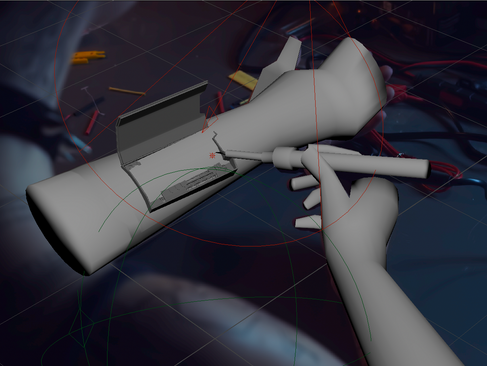 I extended the arm so that I had geometry where the hand and fingers were. Then I modeled the other hand, partial finger, and the soldering pen. A area light was put where the pen would be interacting with the arm piece that Eugene modeled. Her model and the pen model have an aiSurfaceShader on them because they are more metallic and reflective while the arms have a lambert shader on them since the reflections wouldn't be as harsh.